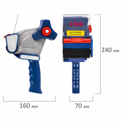 | Особенности | винт для регулировки натяжения ленты, встроенный стальной нож, прижимная пластина для непрерывного наклеивания ленты, эргономичная рукоятка |