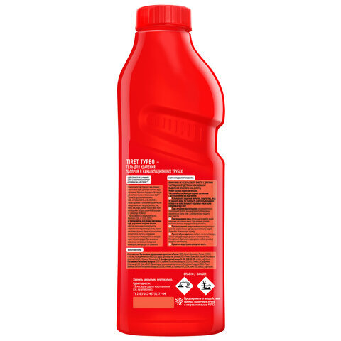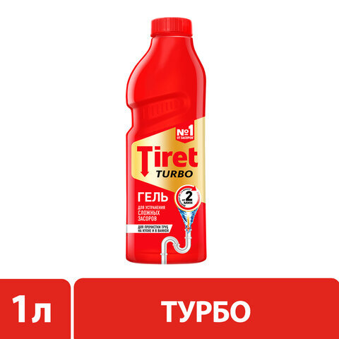 Средство для прочистки канализационных труб 1 л, TIRET (Тирет) "Turbo", гель, 8147377