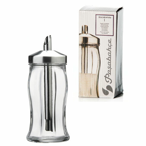 Сахарница с дозатором, объем 260 мл, PASABAHCE "Black&White", фирменная подарочная упаковка, 80078