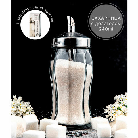 Оригинальная стеклянная сахарница PASABAHCE "Black&White" оснащена специальным дозатором из нержавеющей стали, который позволяет контролировать подачу сахара для чая или кофе.