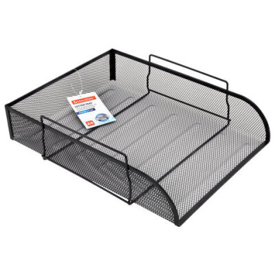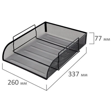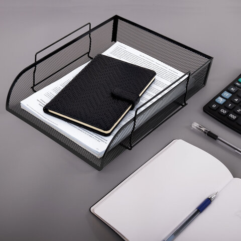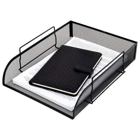 Лоток горизонтальный металлический для бумаг BRAUBERG "Germanium", А4 (260х337х77 мм), черный, 231954