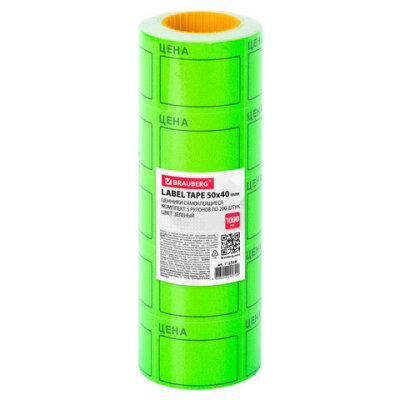 Ценник большой "Цена" 50х40 мм зеленый, самоклеящийся, КОМПЛЕКТ 5 рулонов по 200 шт., BRAUBERG, 112359