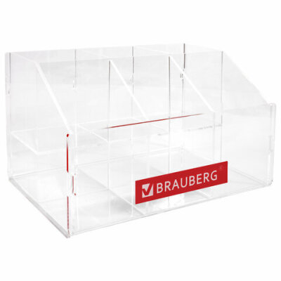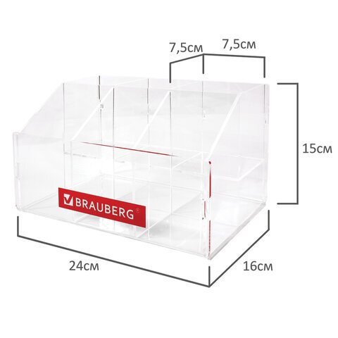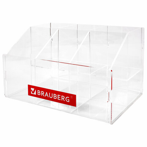 Подставка под письменные принадлежности BRAUBERG, 6 отделений, 15х24х16 см, оргстекло, 505923