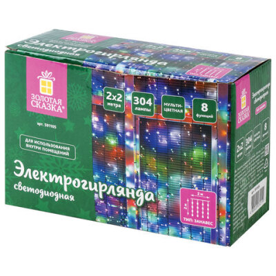 Электрогирлянда-занавес комнатная "Штора" 2х2 м, 304 LED, мультицветная, 220 V, контроллер, ЗОЛОТАЯ СКАЗКА, 591105