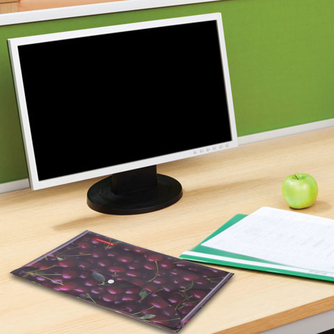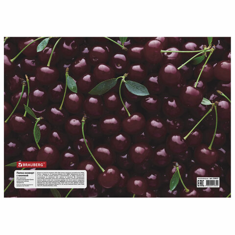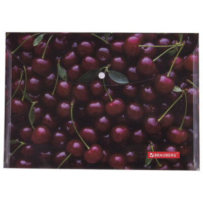 Папка-конверт с кнопкой BRAUBERG "CHERRY", А4, 160 мкм, до 100 листов, цветная печать, 228037