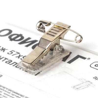Бейдж горизонтальный (57х90 мм), с клипсой и булавкой, жесткий, ОФИСМАГ, 235376