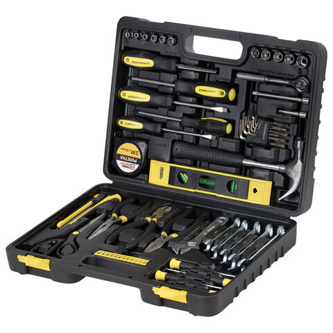 | Комплектация набора | биты, головки, молоток, отвертка, пассатижи, разводной ключ, трещотка |