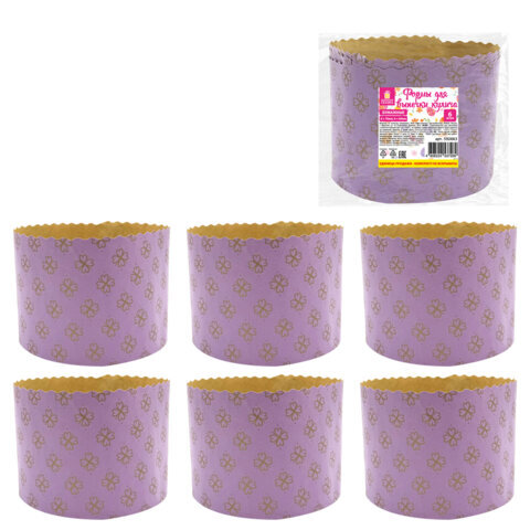 Форма бумажная для выпечки пасхального кулича "Клевер", КОМПЛЕКТ 6 шт., 7х6 см, ЗОЛОТАЯ СКАЗКА, 592663