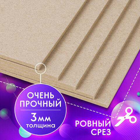 Картон переплетный, толщина 3 мм, А3 (297х420 мм), КОМПЛЕКТ 5 шт., BRAUBERG ART, 114212