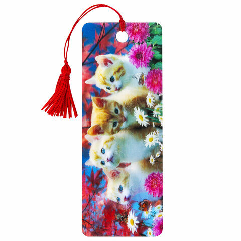 Закладка для книг с линейкой 3D ОБЪЕМНАЯ BRAUBERG, "Котята", с декоративным шнурком-завязкой, 125762