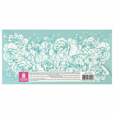 Конверт для денег ЗОЛОТАЯ СКАЗКА предназначен для вручения денежного подарка на торжественных мероприятиях по случаю бракосочетания.