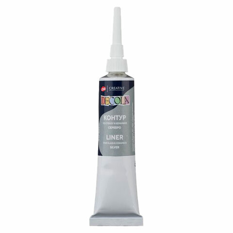 Контур акриловый по стеклу и керамике "Декола", туба 18 мл, серебряный, Невская Палитра, 5303966