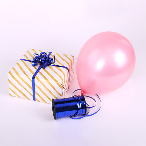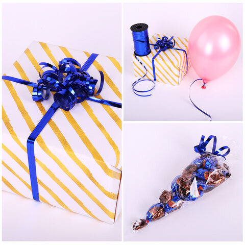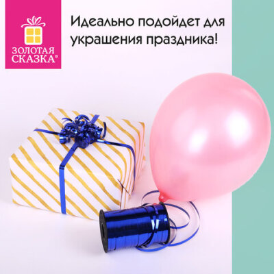 Лента упаковочная декоративная для шаров и подарков, металлик, 5 мм х 250 м, синяя, ЗОЛОТАЯ СКАЗКА, 591818
