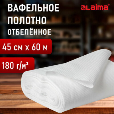 Полотно ВАФЕЛЬНОЕ отбеленное, рулон 0,45х60 м, в пакете, плотность 180 (±10) г/м2, LAIMA, 609577