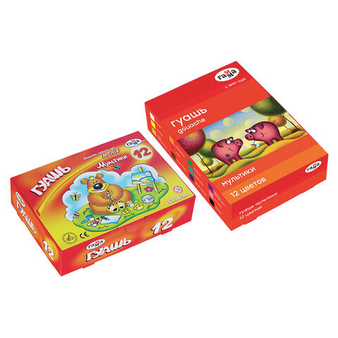 Гуашь ГАММА "Мультики", 12 цветов по 20 мл, картонная упаковка, 221032