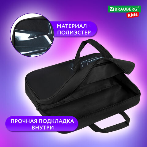 Папка на молнии с ручками BRAUBERG KIDS А4, 1 отделение, полиэстер, 80 мм, "Dark car", 273315