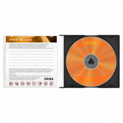 DVD+R MIREX 16X 4,7 GB – фирменный записываемый компакт-диск для длительного и надежного хранения данных. Предназначен для однократной записи и последующего воспроизведения видео, музыки, игр, изображений, создания цифровых архивов.