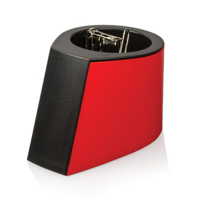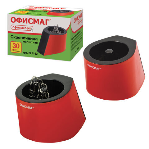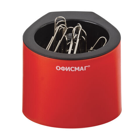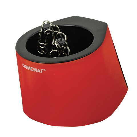 Скрепочница магнитная ОФИСМАГ с 30 скрепками, стильный корпус, красно-черная, 225192
