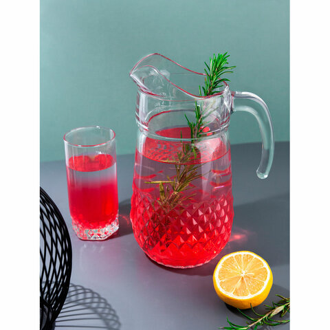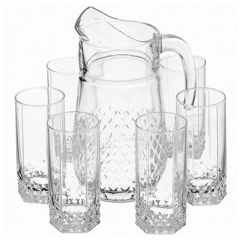 Набор столовый 7 предметов, кувшин 1250 мл + 6 стаканов 275 мл, стекло, PASABAHCE "ВАЛЬС", фирменная подарочная упаковка, 97675