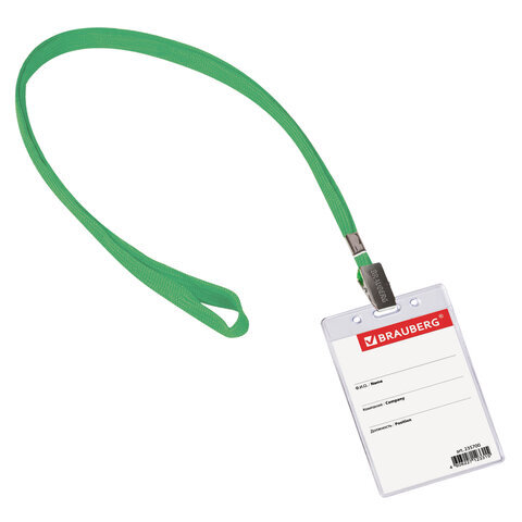Бейдж вертикальный (90х60 мм), на зеленой ленте 45 см, BRAUBERG, 235700
