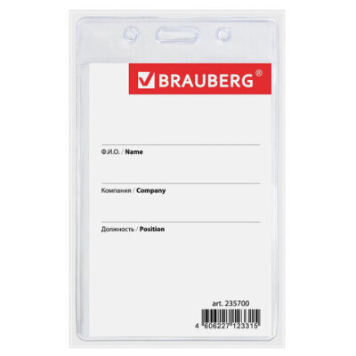 Вертикальный бейдж BRAUBERG для именной карточки предназначен для идентификации сотрудников в компаниях, а также на семинарах, тренингах, презентациях и других мероприятиях.