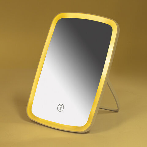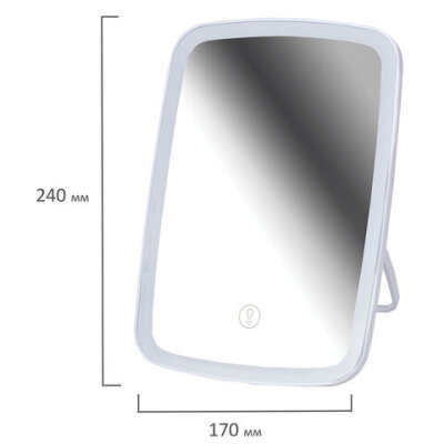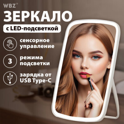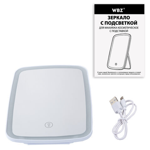 Зеркало настольное с LED-подсветкой для макияжа, 24х17 см, 3 режима свечения, аккумулятор 800 mAh, цвет белый, WBZ (ВБЗ), 609333