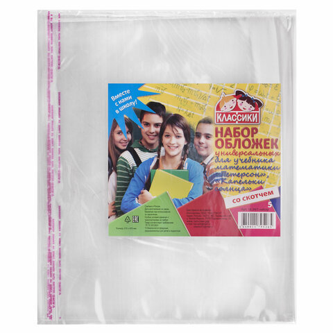 Обложки ПП для учебника Петерсон, КОМПЛЕКТ 5 шт., КЛЕЙКИЙ КРАЙ, 80 мкм, 270х450 мм, универсальные, 16.34/5