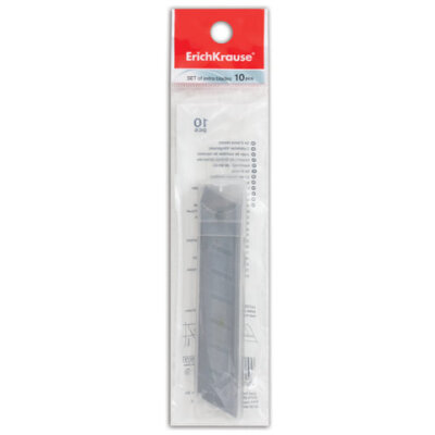 Лезвия для ножей 18 мм КОМПЛЕКТ 10 ШТ., толщина лезвия 0,5 мм, в пластиковом пенале, ERICH KRAUSE, 19274