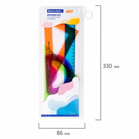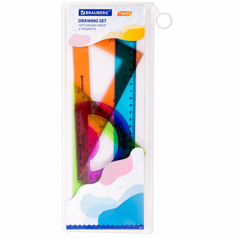Набор чертежный BRAUBERG "FRUITY" предназначен для выполнения чертежных и измерительных работ в школе и дома.