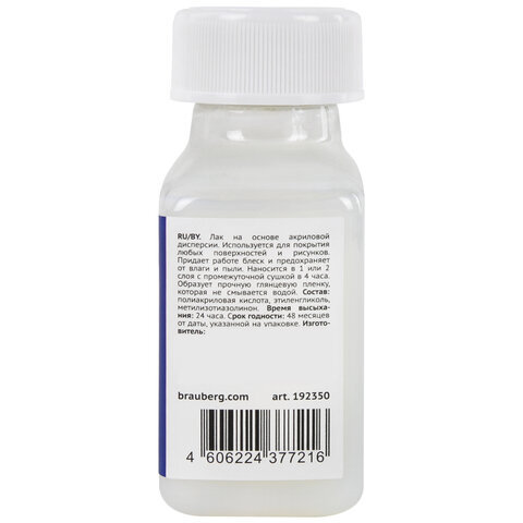 Лак акриловый глянцевый художественный, в бутылке, 100 мл, BRAUBERG ART CLASSIC, 192350