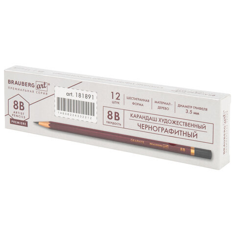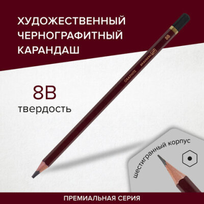 Карандаш чернографитный художественный 8B, 1 шт., BRAUBERG ART "PREMIERE", ВЫСШЕЕ КАЧЕСТВО, 181891