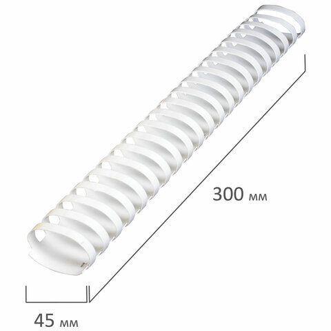 Пружины пластиковые для переплета, КОМПЛЕКТ 50 шт., 45 мм (для сшивания 341-410 л.), белые, BRAUBERG, 530933