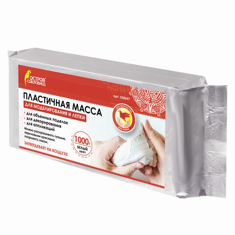 Паста (масса) для лепки ОСТРОВ СОКРОВИЩ, самозатвердевающая, 1000 г, натуральный белый, 228657