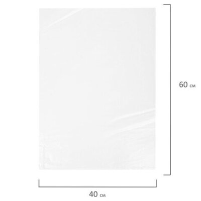 Пакеты фасовочные ПРОЧНЫЕ, первичный ПВД 40х60 см, КОМПЛЕКТ 100 шт., 40 мкм