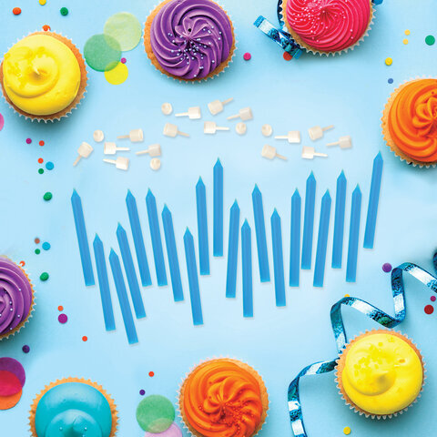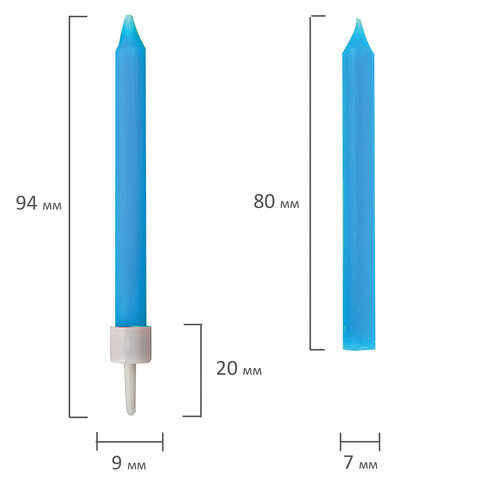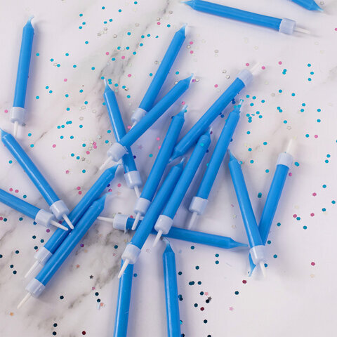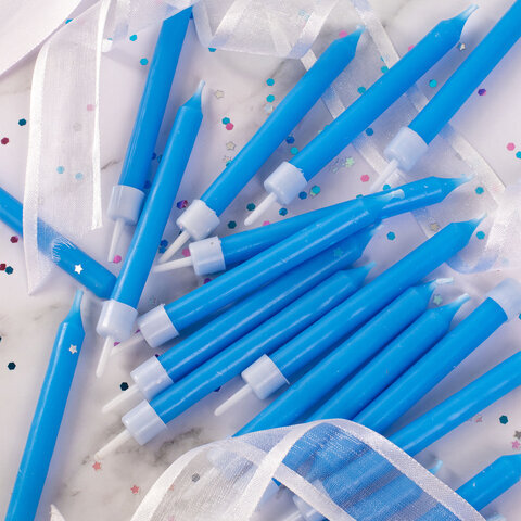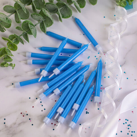 Набор свечей для торта 20 шт., 8 см, с держателями, голубые, ЗОЛОТАЯ СКАЗКА, в блистере, 591455