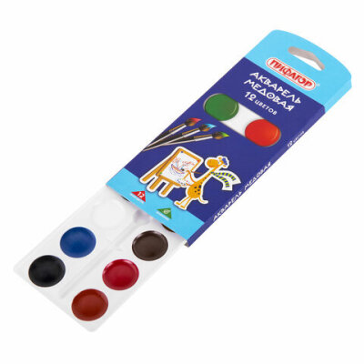 Краски акварельные ПИФАГОР "ЖИРАФ" на коррексе, 12 цветов, медовые, круглые кюветы, 192647