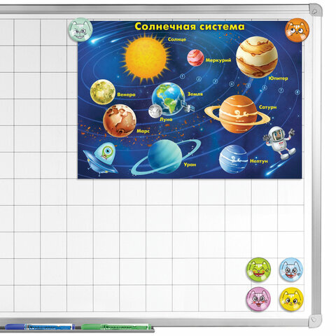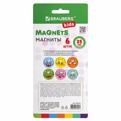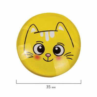 Круглые стеклянные магниты BRAUBERG KIDS с 3D-дизайном "Коты" надежно прикрепляют листы бумаги к магнитно-маркерной поверхности досок, витрин, флипчартов и холодильников.