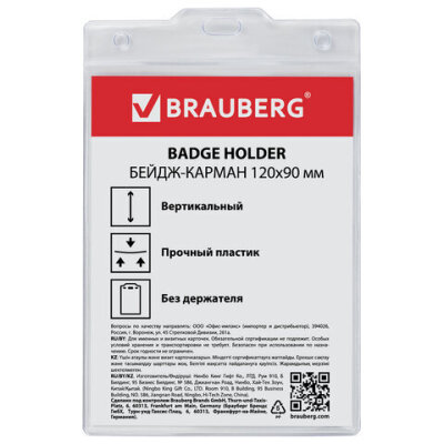 Вертикальный БОЛЬШОЙ бейдж BRAUBERG без крепления для именной карточки предназначен для идентификации сотрудников в компаниях, а также на семинарах, тренингах, презентациях и других мероприятиях.