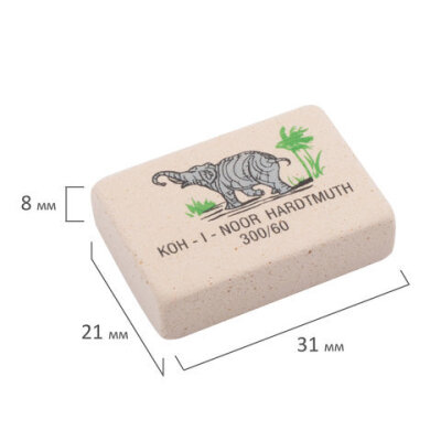 Ластик KOH-I-NOOR "Слон" 300/60, 31x21x8 мм, белый/цветной, прямоугольный, натуральный каучук, 0300060025KDRU