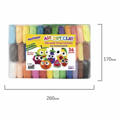 Пластилин супер легкий воздушный застывающий 36 цветов, 360 г, 3 стека, ЮНЛАНДИЯ, 105907