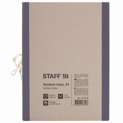 Папка архивная А4 "Форма 21", 120 мм, переплетный картон/бумвинил, завязки, до 1200 л, STAFF, 112168