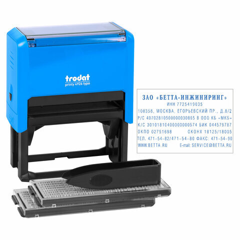 | В комплекте | две кассы шрифта, пинцет, штемпельная подушка |