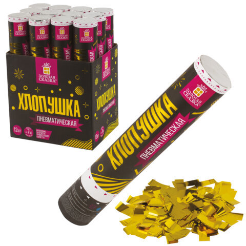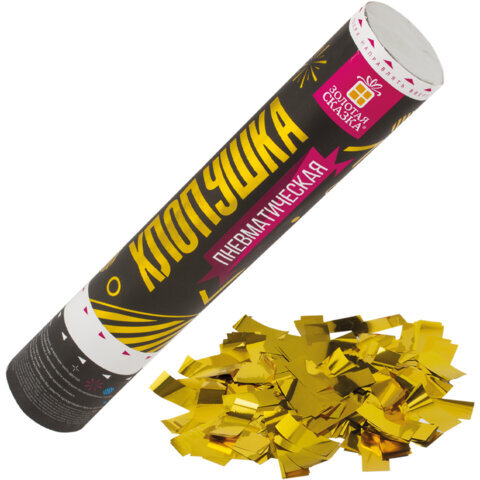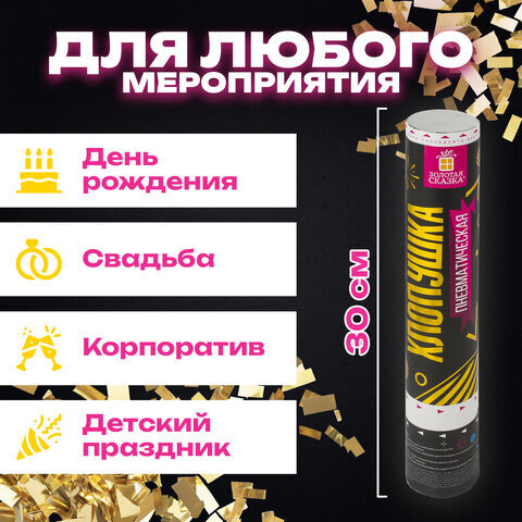 Пневматическая хлопушка ЗОЛОТАЯ СКАЗКА предназначена для создания отличного настроения и атмосферы настоящего веселья на любом празднике - новогодней вечеринке, торжестве в честь Дня Рождения, выпускном, корпоративе или любом другом праздничном событии.