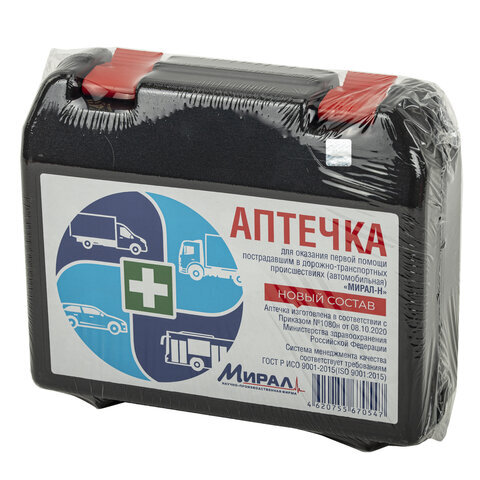 Аптечка первой помощи автомобильная МИРАЛ-Н, футляр полистирол, состав - по приказу № 1080н, ФП 4