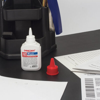 Клей ПВА ОФИСМАГ предназначен для склеивания бумаги, картона, фотографий, дерева.