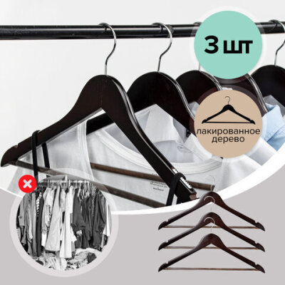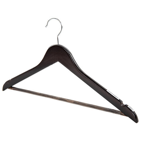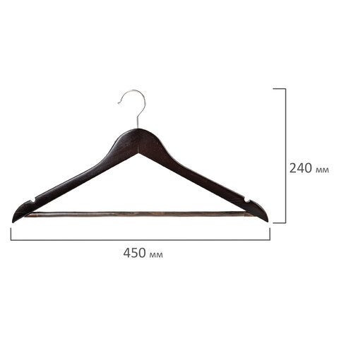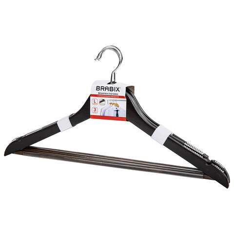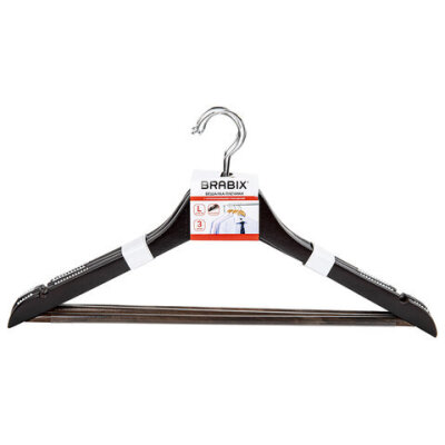 Вешалки-плечики BRABIX с перекладиной для одежды и антискользящими плечиками с рифленой силиконовой поверхностью, которая исключает сползание одежды. Выполнены из качественной древесины благородного темного окраса. Стильные и очень удобные.