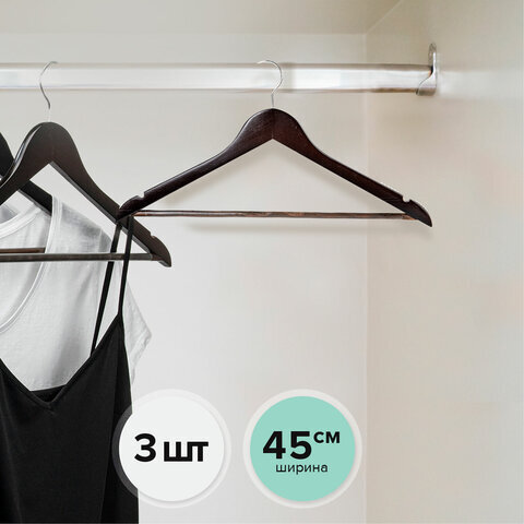 Вешалки-плечики с антискользящими накладками, КОМПЛЕКТ 3 штуки, размер 48-50, дерево, BRABIX, 607476