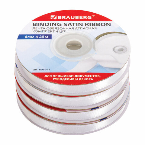Обвязочная атласная лента BRAUBERG с ткаными кромками на обоих краях предназначена для декорирования подарков, прошивки документов, использования во флористике, рукоделии и декоре.