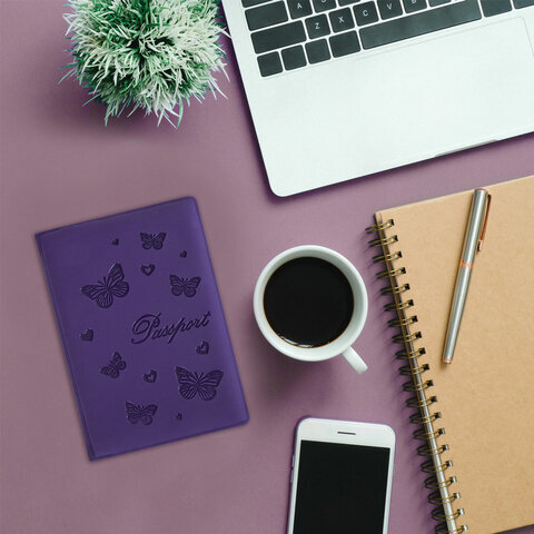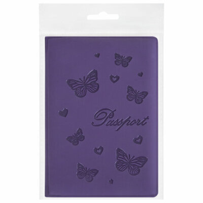 Обложка для паспорта STAFF, бархатный полиуретан, "Бабочки", фиолетовая, 237618