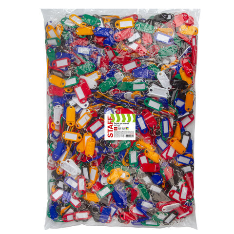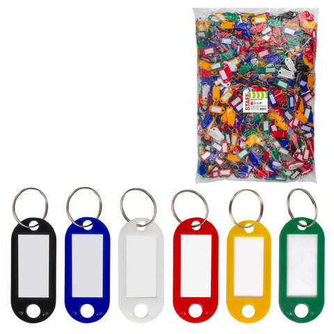 Бирки для ключей КОМПЛЕКТ 1000 ШТ., длина 50 мм, инфо-окно 30х15 мм, АССОРТИ, STAFF, 237494